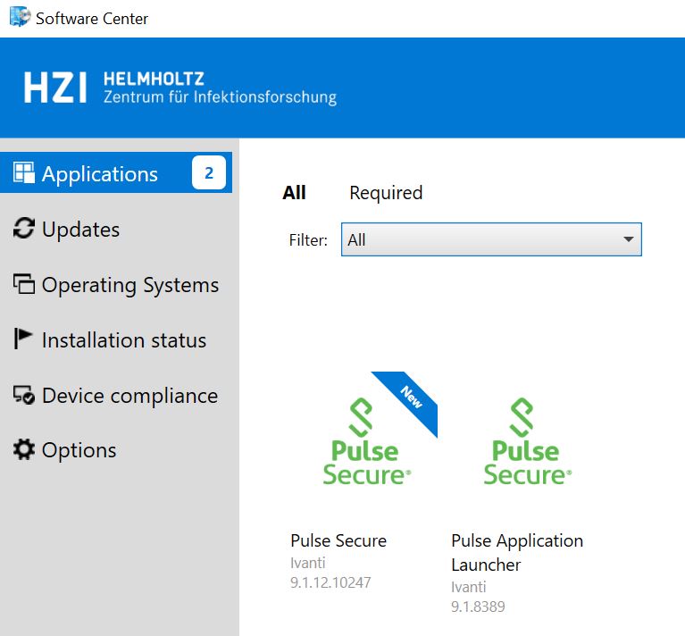 a) If you have already access to the Software Center, install from there (Fig.3a ,Mac: Fig. 3b) b) If you do not have access to the Software Center, install from https://tools.helmholtz-hzi.de/pulsesecure (Fig. 3c)